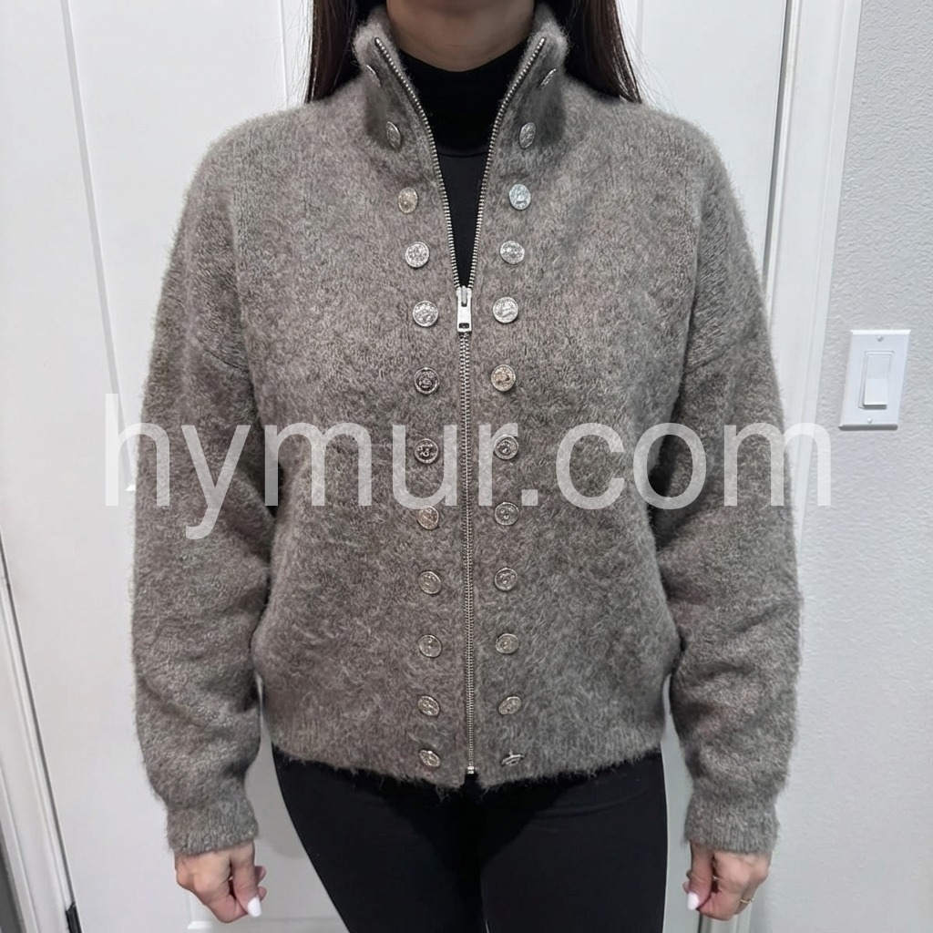 The Fuzzy Grey High Neck Long Sleeve Cardigan is a cozy and stylish addition to any wardrobe. Made with a high neck and long sleeves, it provides warmth and comfort during colder months. The fuzzy texture adds a touch of softness and style, making it a versatile piece for any outfit.