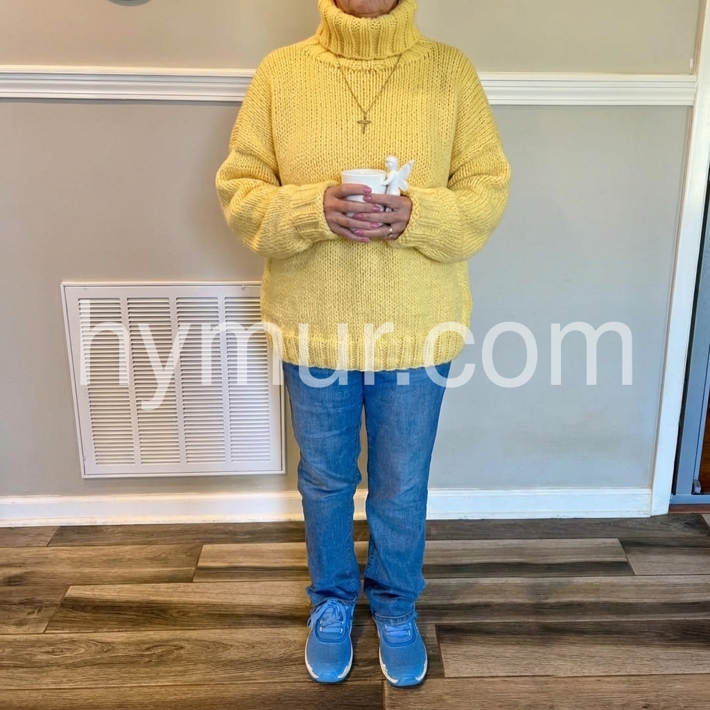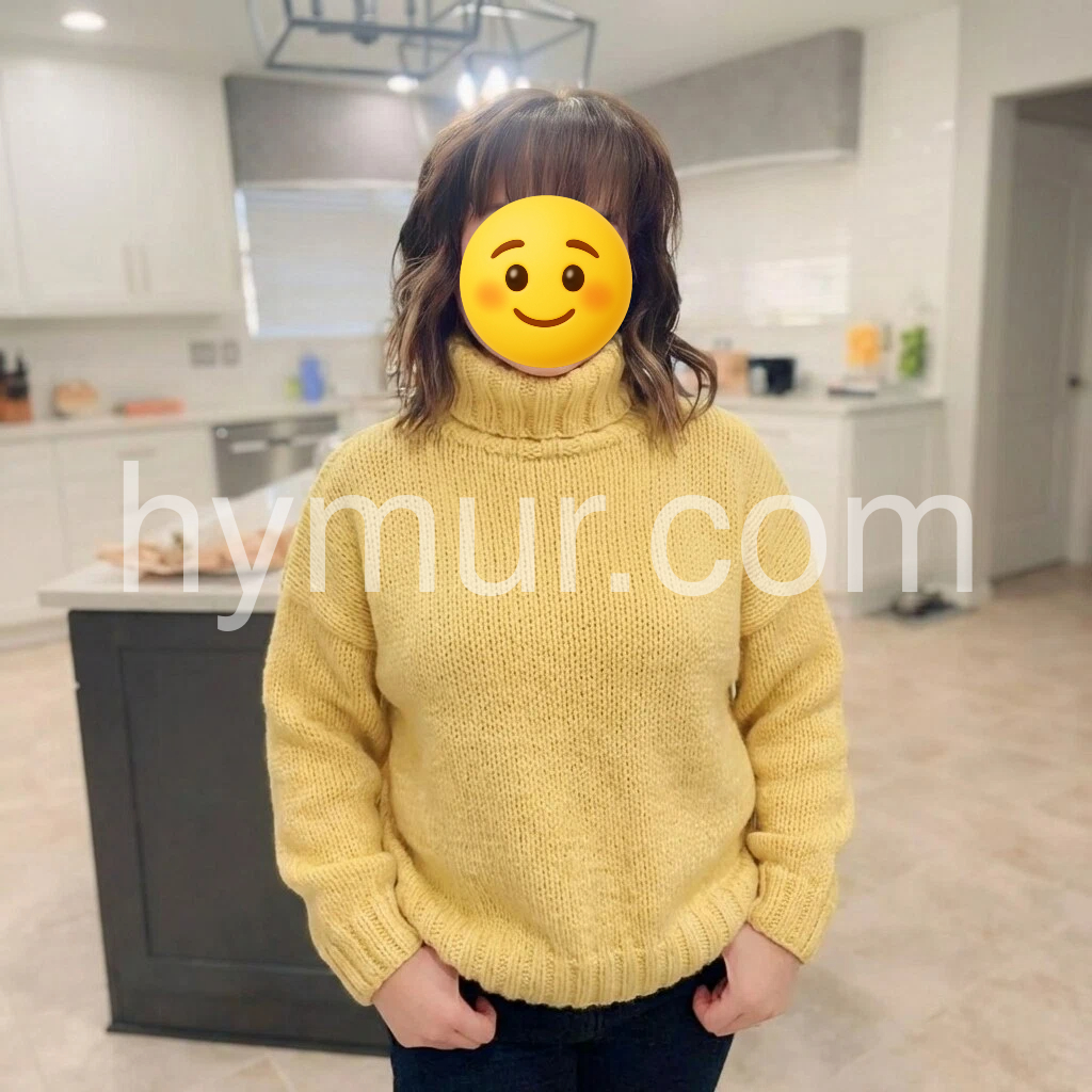 Yellow Plain High Neck Long Sleeve Sweater